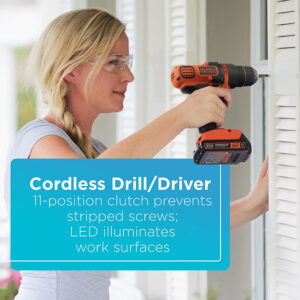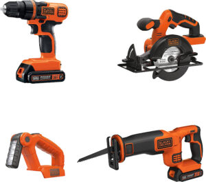 The BLACK+DECKER 20V MAX Power Tool Combo Kit (BD4KITCDCRL) is part of the 20V MAX battery system, and it features 4 cordless power tools, including a drill/driver, circular saw, reciprocating saw, and an LED work light. The 2 batteries that come with the set double the runtime, allowing you to complete larger projects with less downtime.