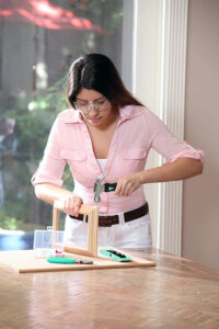 Other additional features of the Her Hardware Homeowner’s Tool Set include its magnetic nail holder, which makes it easy to start nails with one hand, and its 6” magnetic 3-vial level, which helps ensure that your projects are level and straight. The set also includes an aggressive grip 6” long nose pliers with a wire cutter, which makes it easy to grip and cut wires, and a utility knife for cutting materials such as cardboard or rope.