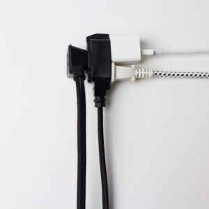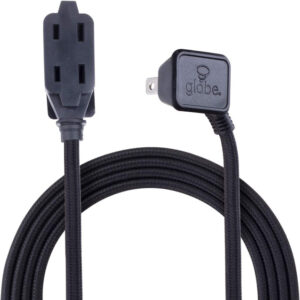 The Globe Electric 22810 Designer Series Extension Cord is a 9ft fabric cord that comes in black. It has 3 polarized outlets, allowing you to convert one socket into three. The right angle plug design saves space and allows furniture to sit flush against the wall. It has a maximum wattage of 1,625, making it perfect for small appliances like nightlights, alarm clocks, and phone chargers.